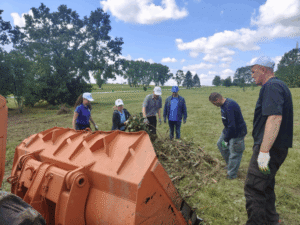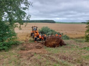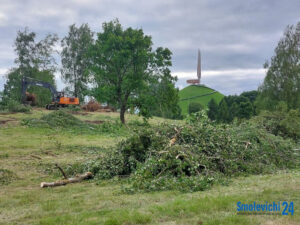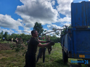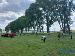 С раннего утра у Мемориального комплекса «Курган Славы» кипит работа — здесь проходит субботник по наведению порядка после недавнего урагана. Члены Смолевичской районной организации РОО «Белая Русь» активно включились в благоустройство территории: они убирали поваленные ветки, разравнивали чернозем, сажали траву.