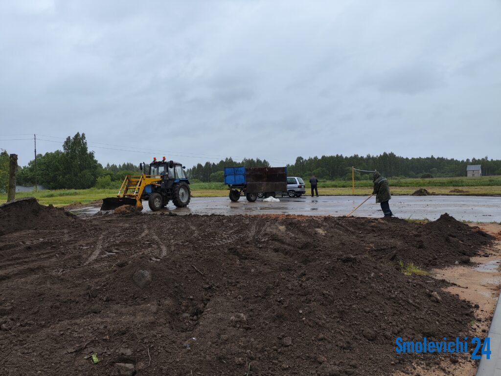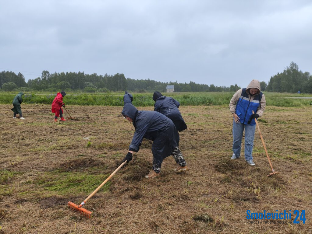 Молодежь Смолевичского ЖКХ и водоканала трудится на территории одного из знаковых мест района. Работают юноши и девушки с хорошим настроением.