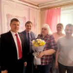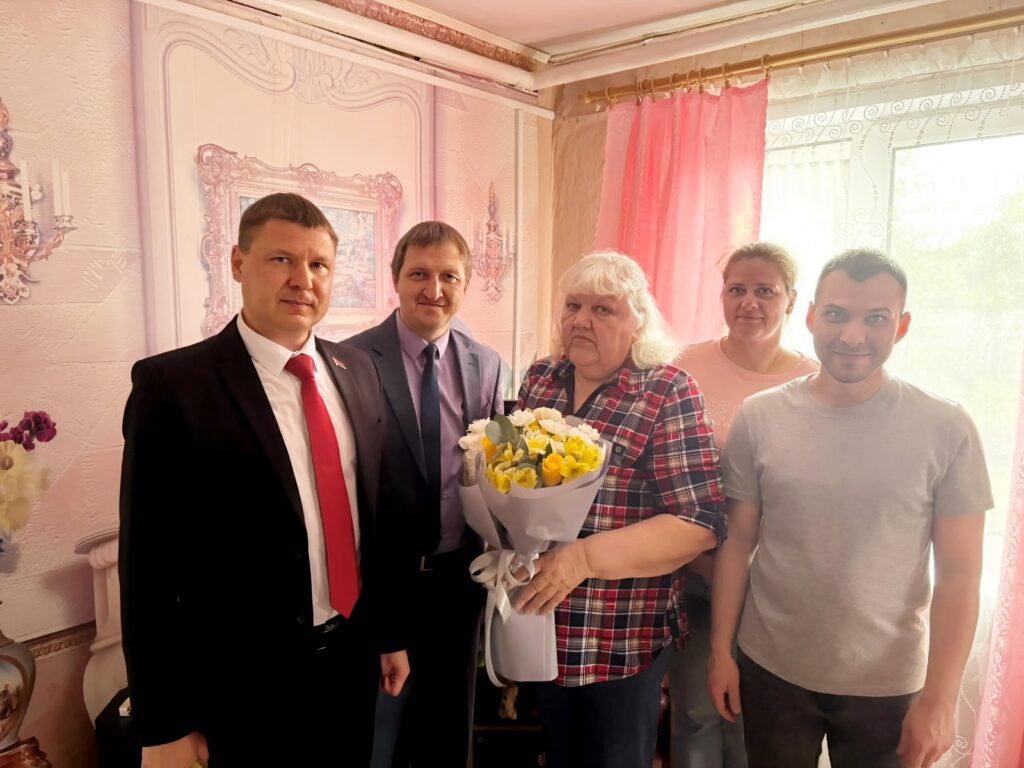 К ветерану труда пришли председатель Минской областной организации Белорусского профсоюза работников ЖКХ и сферы обслуживания Владимир Гуринович, директор Смолевичского ЖКХ Дмитрий Кудин, его заместитель Андрей Скляренко, председатель профкома организации Тамара Чичко и представители молодежного актива.